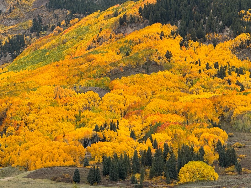 Teresa and I headed to Crested Butte to see more of Colorado’s colorful fall grandeur. Crested Butte has become our go-to place for fall colors in recent years, and once again we were not disappointed. The first day we drove around on the roads that go north of town before heading to Kebler Pass and down the Ohio Pass road toward Gunnison.