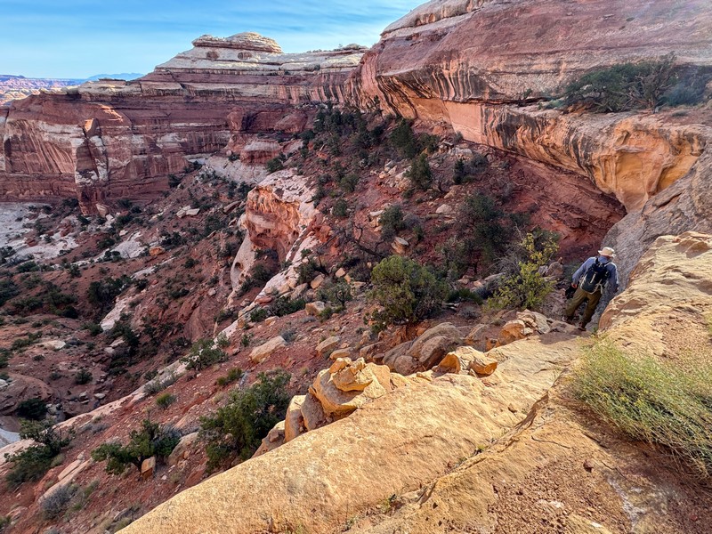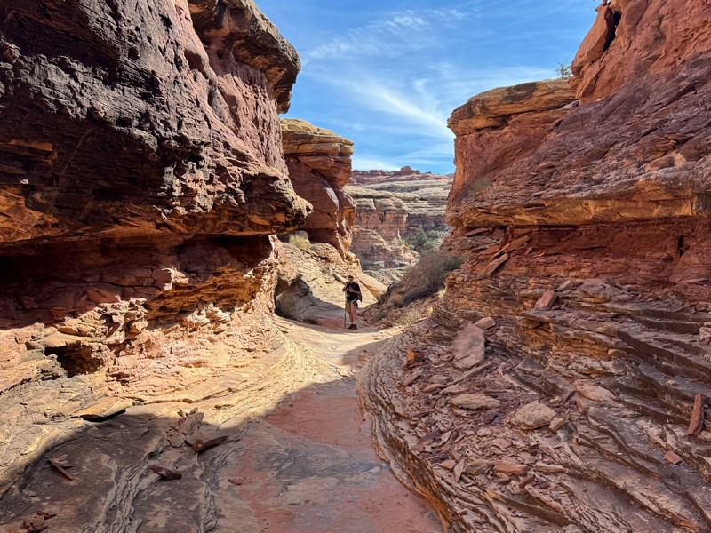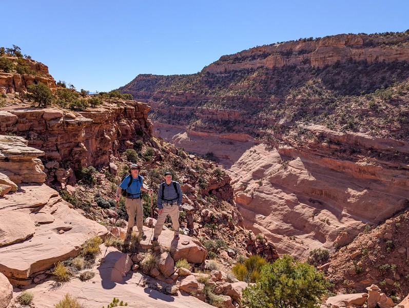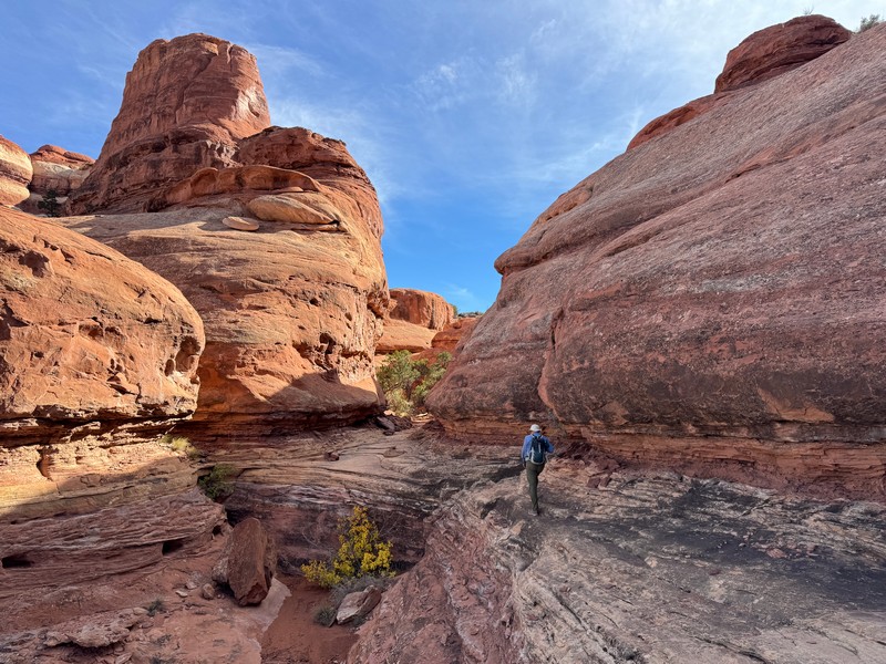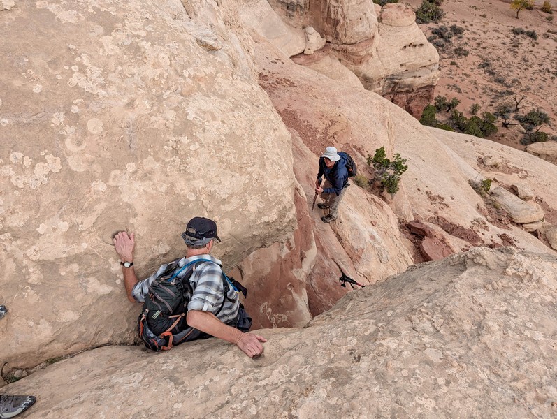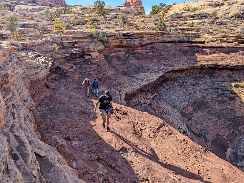 Then we hiked down Shot Canyon for a while and then hiked up out of the canyon and crossed Water Canyon on an amazing intricate route that is part of the fun of hiking in the canyon country. The route was unsigned but lightly marked with cairns. A good footpath appeared later on.