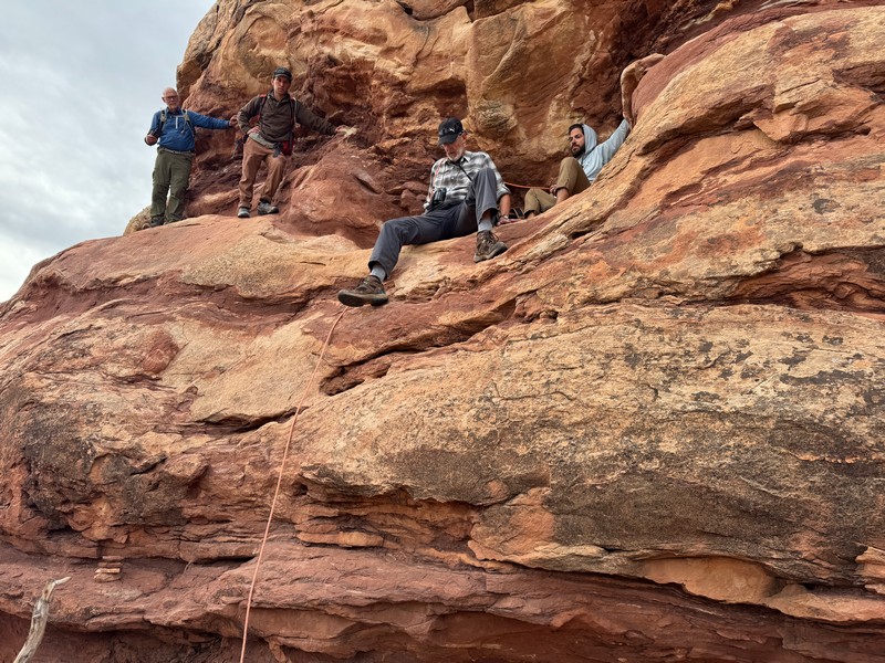 Matt had a 40 foot rope he pulled out to assist us on some of the down climbs. It could have been done without a rope but it was comforting to have one. We were glad we had a guide for this descent too.