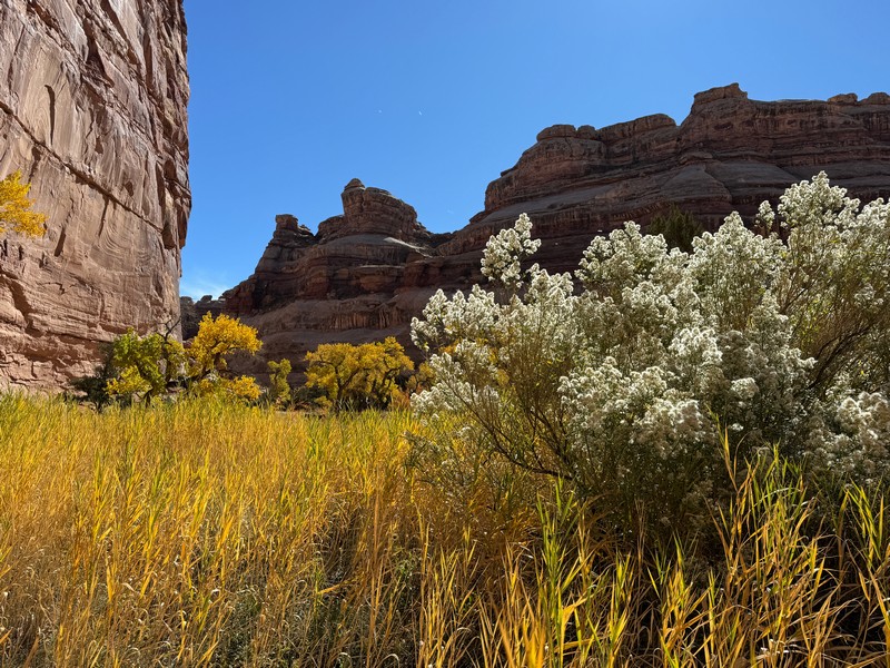 There is just one company that I could find that leads expeditions into the Maze, Navtec Expeditions in Moab, Utah. They offer 4 day trips with a standard itinerary that they post online. I called them a few times to get details and asked if I could sign up for a trip at the last minute if space were available and they said yes. I wanted to be sure I felt healthy enough and I wanted to go in nice weather if possible, especially for photography. When I checked with them in early October they told me a trip was scheduled to leave on Thursday, October 30th and that it had a special itinerary that a group had requested, with a lot more hiking than their usual trips, essentially across the entire Maze. That was perfect, I thought, just the itinerary that I would have requested! I liked it better than the standard itinerary. I also asked about who else was going, because I didn’t want to crash anybody’s party or slow anybody down. They told me that it was a party of three other people, all in their 70’s. This was starting to sound providential! I waited until the Monday before the trip to squeeze the trigger and sign up, keeping an eye on the weather forecast. The weather looked perfect for the trip. I drove to Moab the day before the departure.