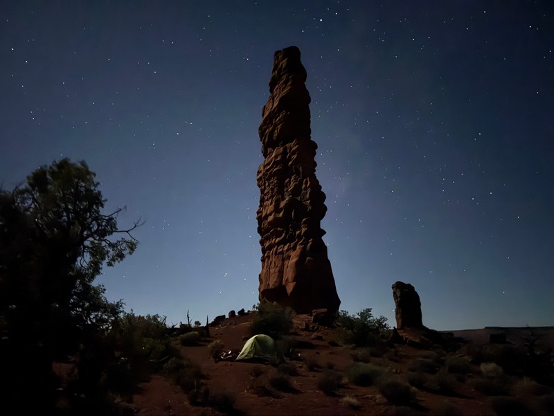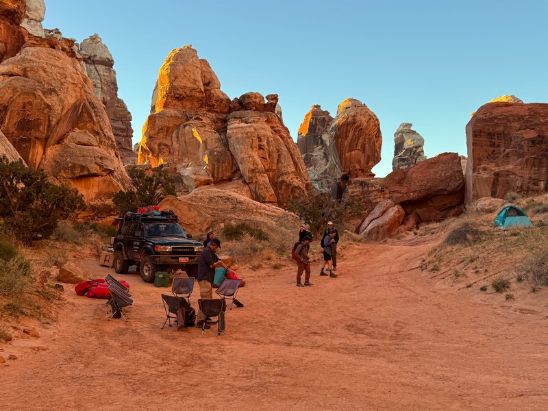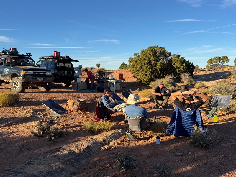 When we all returned to camp later in the morning we loaded up and took off. The four wheeling itself was quite an adventure. Charlotte expertly drove our Land Cruiser while the other guides followed in the one behind. At one particularly tricky spot she had us get out and walk for a short distance. I asked her later if that was because of the weight distribution in the vehicle, or the danger, or to avoid panic attacks for her passengers. She vaguely affirmed that the latter was the case. The drive went pretty quickly and it didn’t seem like it took 5 hours to get to the highway but it certainly did. The ride was adventurous and the conversation good. We eventually pulled into Moab as darkness was falling, and we all exchanged contact info and goodbyes. This completed one of my most memorable adventures in a long time.