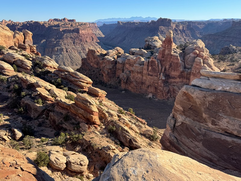 The camp at the Doll House was another spectacular place with tall pinnacles ringing our camp area and a nice view of the distant La Sal Mountains.
