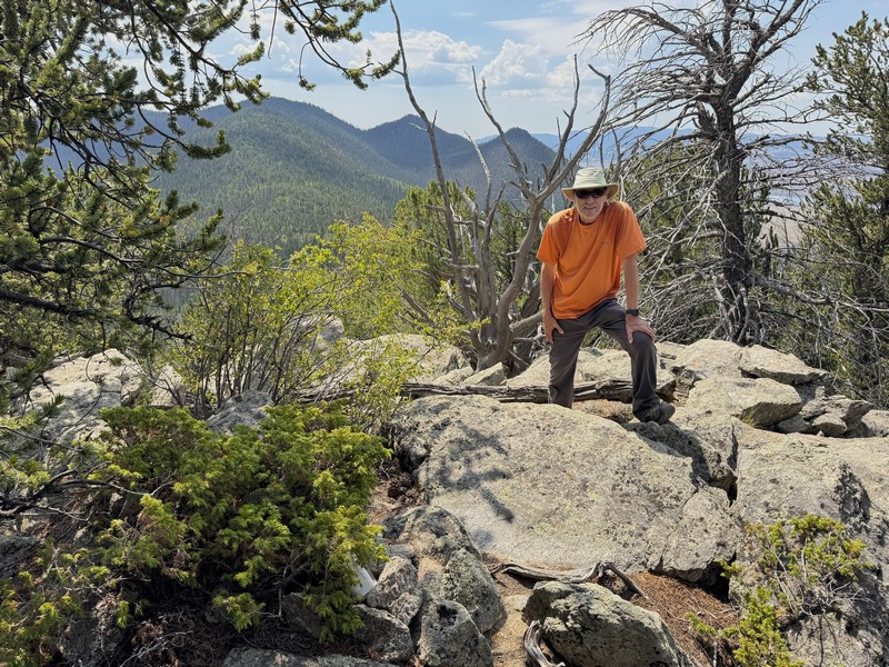 Thunderstorms were starting to build but there was time for this quick little add-on peak that was nearby. We got back on US 24 and went east a short distance and parked along an old forest road on the north side of the highway. We walked across the highway and headed southeast toward UN 9384 and in short order found its summit, located toward the south end of the summit ridge, and then hiked back.