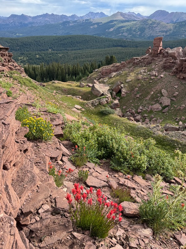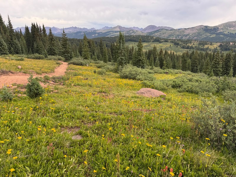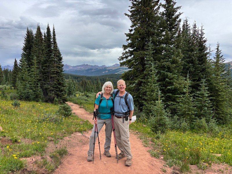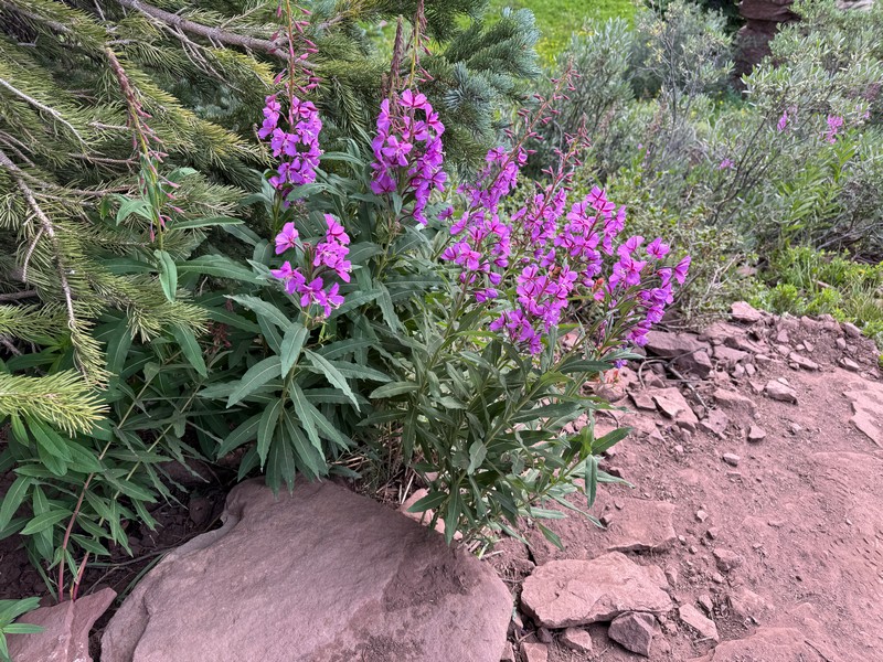 I knew that my wife Teresa would love to see the spectacular scenery and wildflowers that I saw on my first hike to Shrine Ridge a couple of weeks ago. We arranged to do the hike with our nephew’s wife Nancy, who loves to do this sort of thing too. We met Nancy at the trailhead and embarked up the scenic trail. The wildflowers were even more profuse than they were earlier in July, especially along the lower portions of the trail.