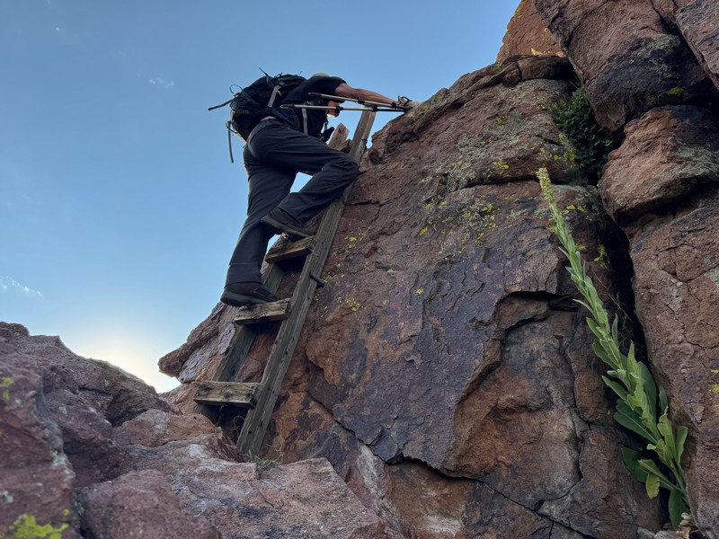 We reached a rough notch with a ladder that we climbed to gain the summit area.